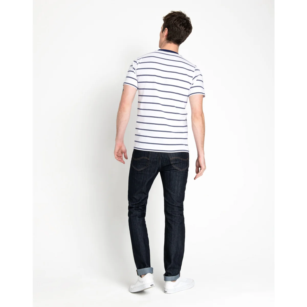 Premium crew cotton tee with classic stripe detail and lee branding on chest