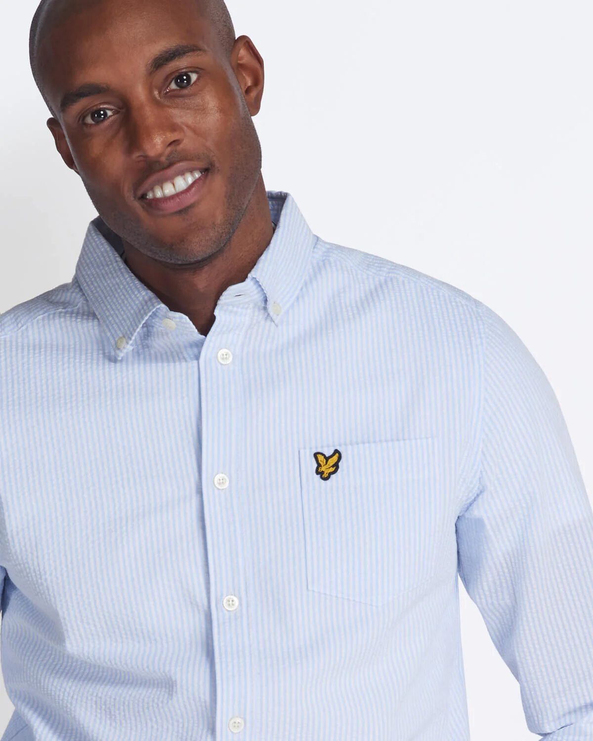 Lyle & Scott Seersucker Stripe Shirt in Pool Blue